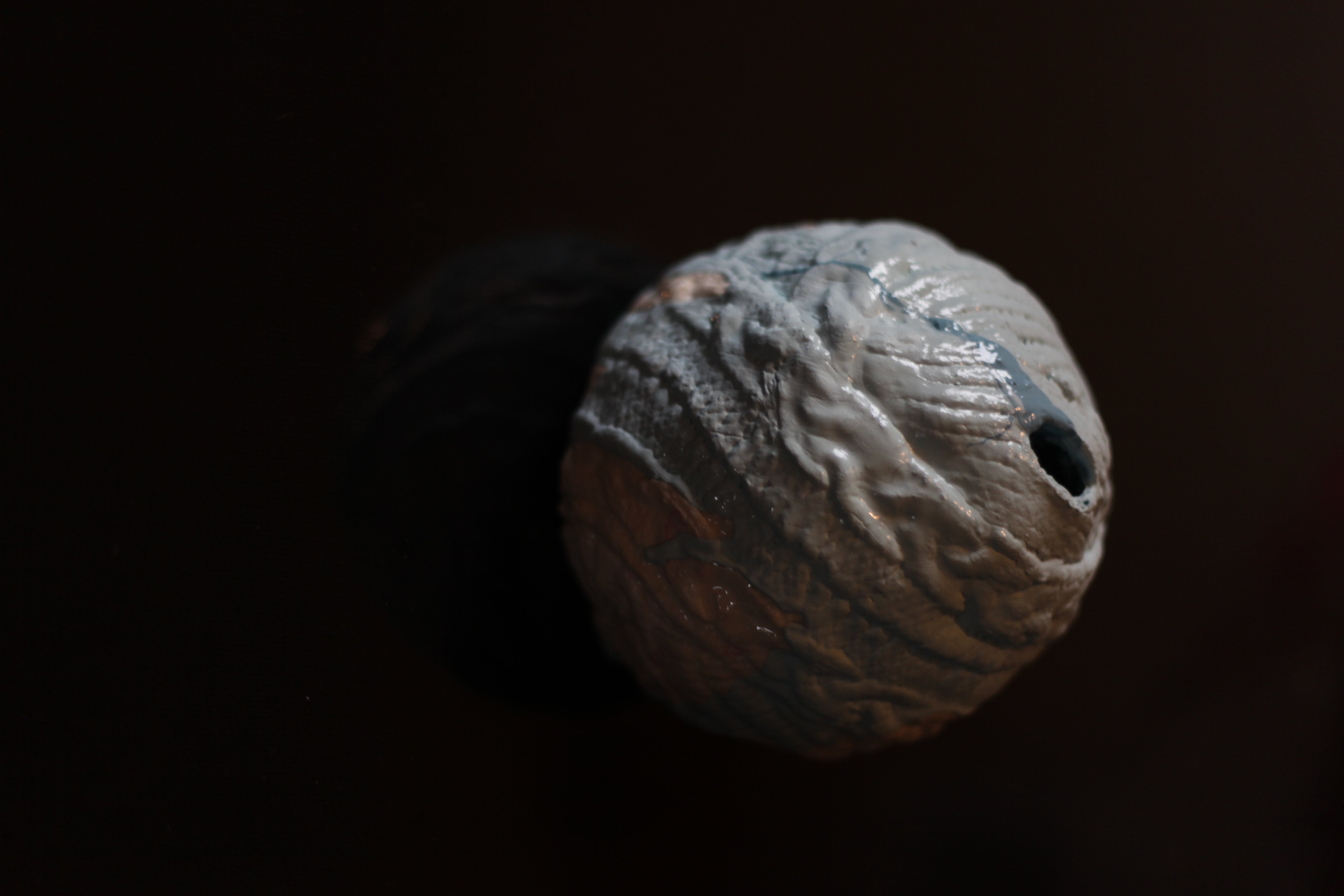 Your unfortunate, yet obedient wife: the capturing of Lady Grange Cable knit porcelain, water-based acrylic, fountain pen ink, gold leaf, gum adhesive